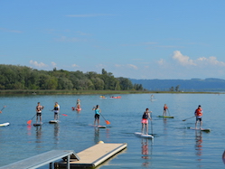 Le Stand Up Paddle, ou SUP, est LE sport à faire si le vent n'est pas au rendez-vous. Debout sur une planche, une longue pagaie à la main, on avance en ramant. Sport complet, il fait travailler tous les muscles et si l'eau est assez claire, il est possible d'admirer le fond lacustre, et en se baladant tôt le matin, on peut même apercevoir le castor. Il peut se pratiquer en balade "pépère" ou sportive et si les vagues sont au rendez-vous, il est possible de danser sur l'eau !